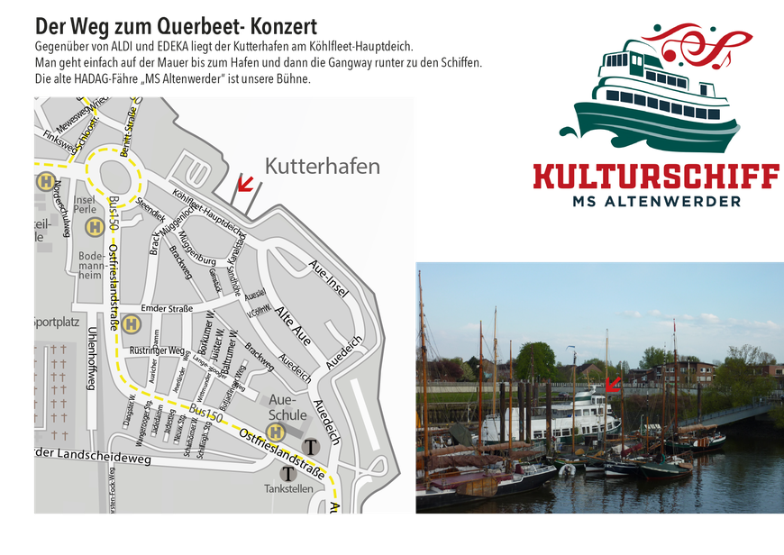 Bei den Querbeet-Konzerten übernehmen einmal im Quartal Schüler*innen der MusikInsel Finkenwerder e.V. das musikalische Kommando auf dem Kulturkutter MS Altenwerder. Ab 18.30 Uhr bringen sie gemeinsam mit ihren jeweiligen Lehrer*innen ihre Instrumente zum Klingen und nehmen das Publikum für etwa eine Stunde mit auf eine musikalisch bunte Reise.